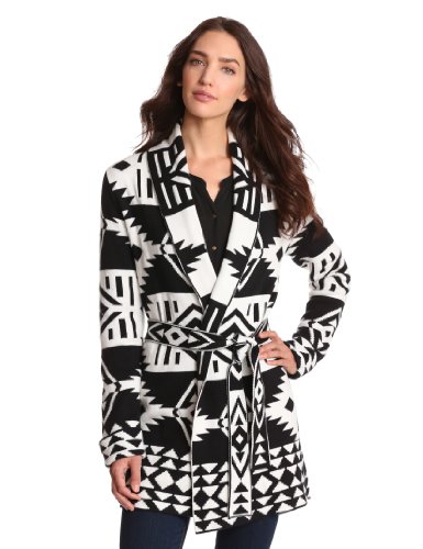 Jones New York Women's Long Sleeve Printed Belted Sweater, Black/Jivory, Small good quality. If Order Now Eligible for FREE Super Saver Shipping!!